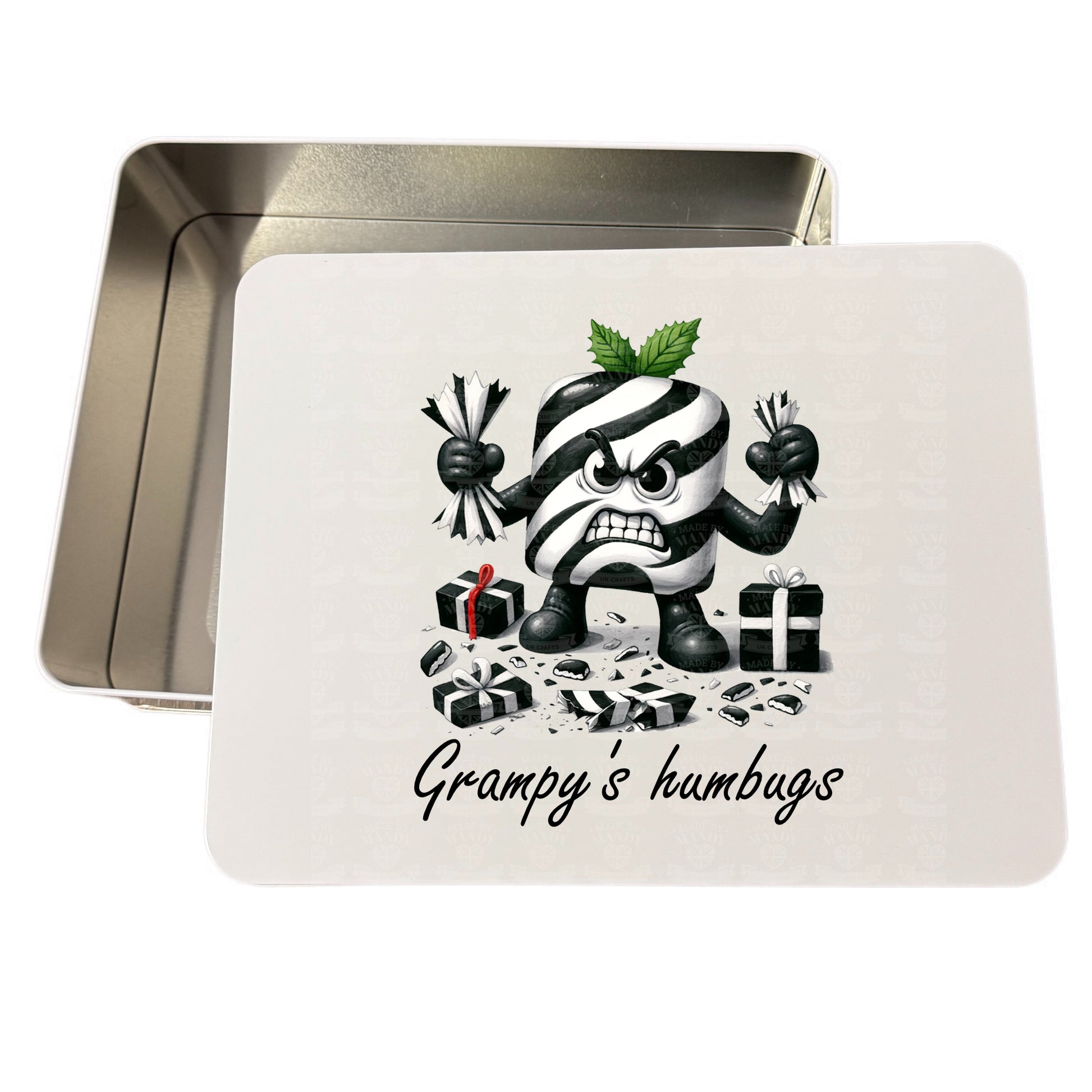 Personalised Biscuit Sweets Storage Metal Tin – Funny Humbug Design | Birthdays Christmas Secret Santa